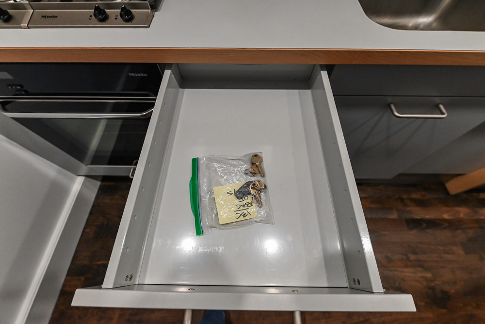 Outfitted with high-performance Miele appliances, this kitchenette is ideal for guest suites, small apartments, or studio setups where design and function go hand-in-hand.