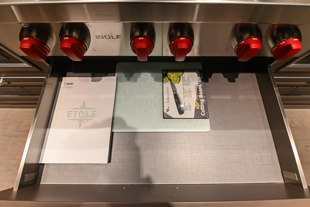 At the heart of the station is a high-performance Wolf gas rangetop, bringing precision cooking power to your culinary space. The integrated layout maximizes usability, making this an ideal standalone cooking area or a stylish addition to an existing kitchen.