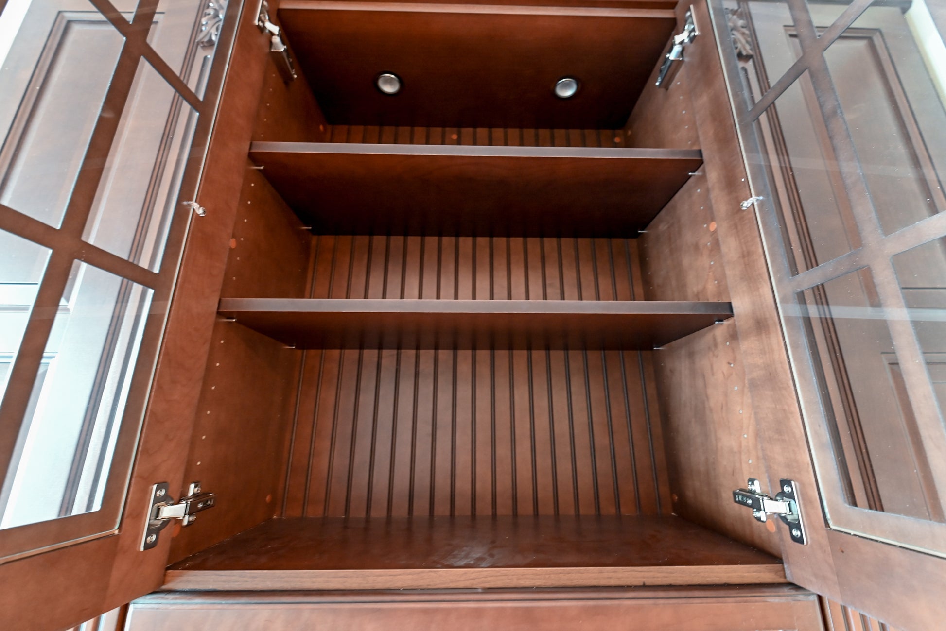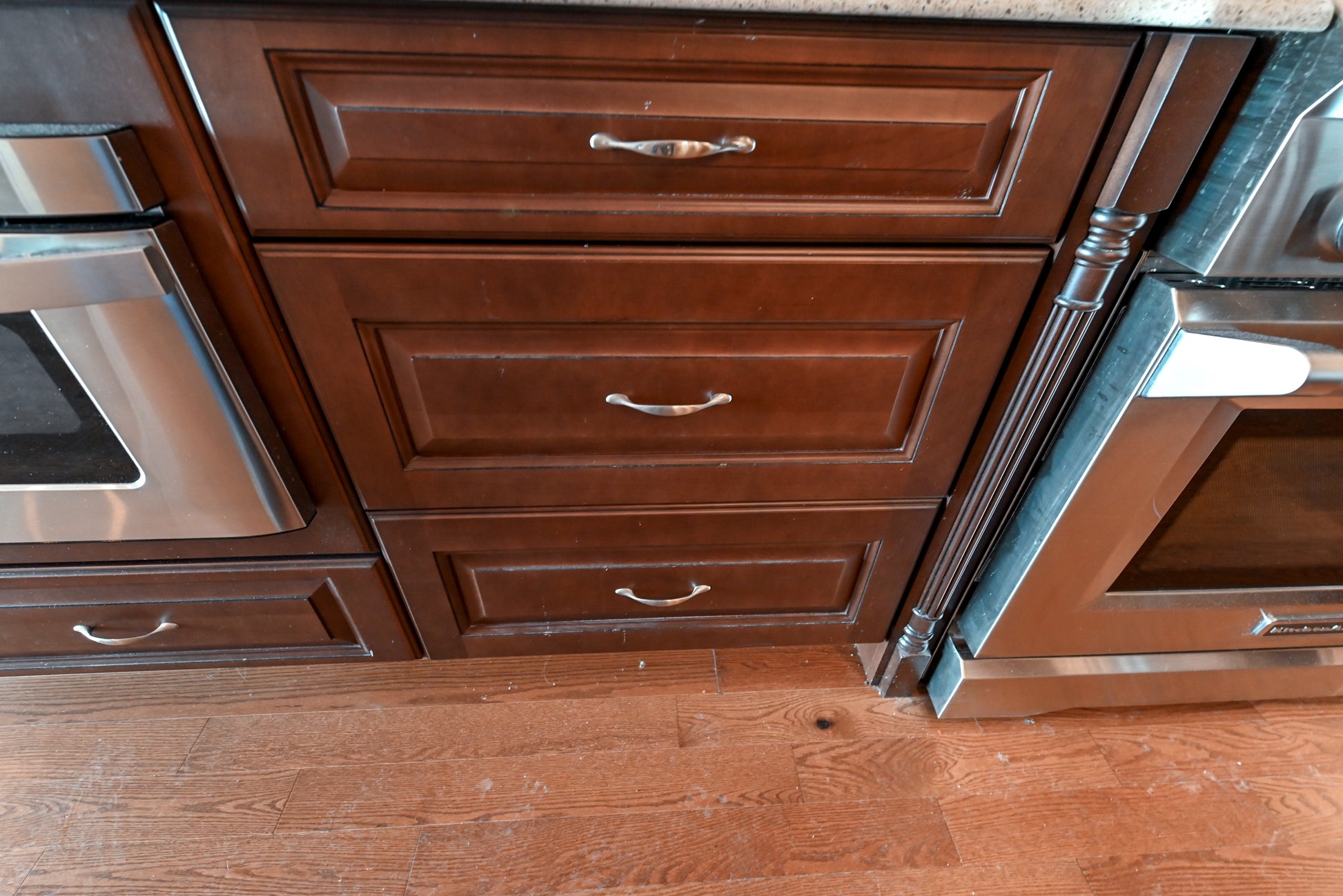Sink Base, Cooktop Base, and Various Cabinets may have pre-existing cutouts for electrical, plumbing, and/or gas connections on backs, sides, and/or toe kicks on both kitchens installed in showrooms and on pre-owned. Molding and Trim may not be complete as pictured in the listing. (Often additional molding and trim is needed to complete retrofit). Backsplash tile, stone and other materials are not included in the purchase price of the kitchen.