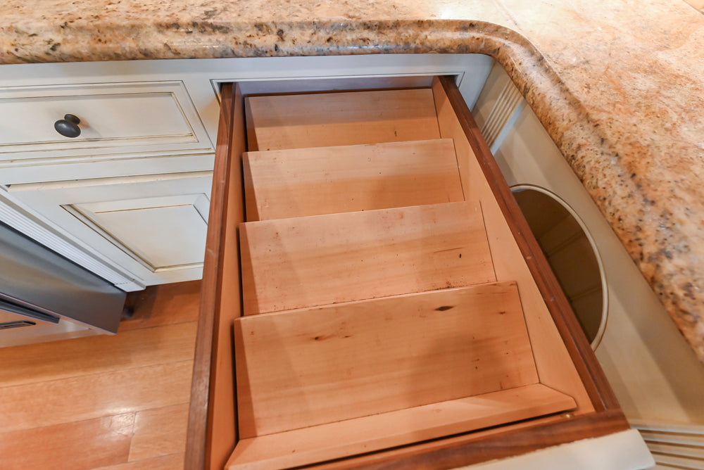 ✔ Christopher Peacock craftsmanship with hand-painted cream cabinetry