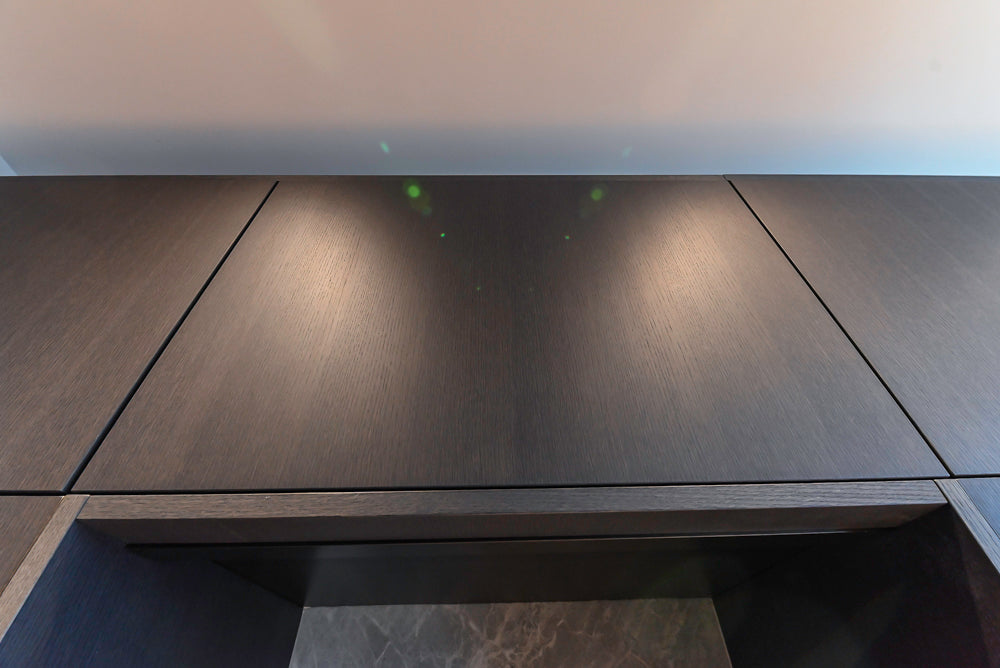 Elevate your kitchen with this Custom Modern Wood Veneer Kitchen, a sophisticated blend of sleek contemporary design and high-performance functionality. Featuring warm wood veneer cabinetry and luxurious white marble countertops, this kitchen offers both style and durability. Equipped with Wolf and Miele appliances, it delivers professional-grade cooking, refrigeration, and cleaning performance, making it perfect for home chefs and design enthusiasts alike.
