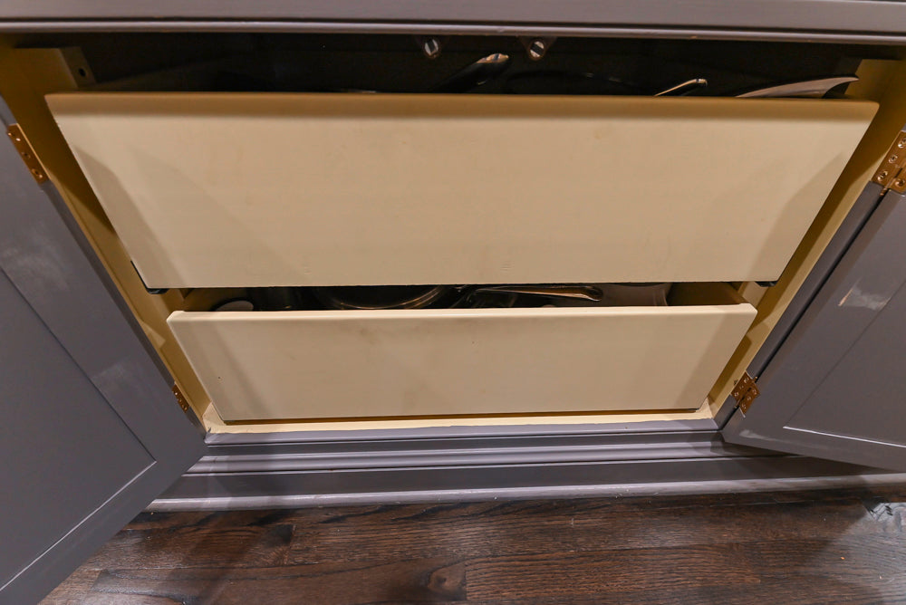 ALL KITCHEN SALES w/ included appliances ARE FINAL UPON SHIPMENT OR PICK-UP. No Refunds, Returns or Exchanges. All products are sold in their “As Is” condition. There are no warranties or representations of any kind or nature, express or implied, concerning the products sold, their condition, their fitness for a particular purpose, their merchantability, or with respect to a patent infringement or the like. The seller shall, in no event, be liable to the purchaser for any indirect, special, or consequential damage caused, directly or indirectly, by the products purchased, any inadequacy thereof for any purpose or any deficiency or defect therein, or the use or maintenance thereof, or any repairs, servicing or adjustments thereto. All risks of loss shall belong to the purchaser upon the purchase date. All items must be picked up, shipped or scheduled to accept delivery within 14 days of purchase, or the expected arrival date in the case of a “Purchase Before Removal”. If the above criteria are not met, items will be returned to stock, and customers will be issued store credit less a 15% restocking fee. If the order is canceled before delivery, a refund will be issued less a 15% restocking fee. Countertops are considered a complimentary value to be included with your purchase. Aurora does not assign value to countertops, backsplashes, or hoods due to their fragile nature. No refunds are available for broken or damaged stone, solid surface, and other countertops. Cabinetry may have pre-existing cutouts for electrical, plumbing, and/or gas connections on backs, sides, and/or toe kicks on cabinetry installed in showrooms and pre-owned. Molding and Trim may not be complete as pictured in the listing. (Often additional molding and trim is needed to complete retrofit). Backsplash tile, stone and other materials are not included in the purchase price of the kitchen.