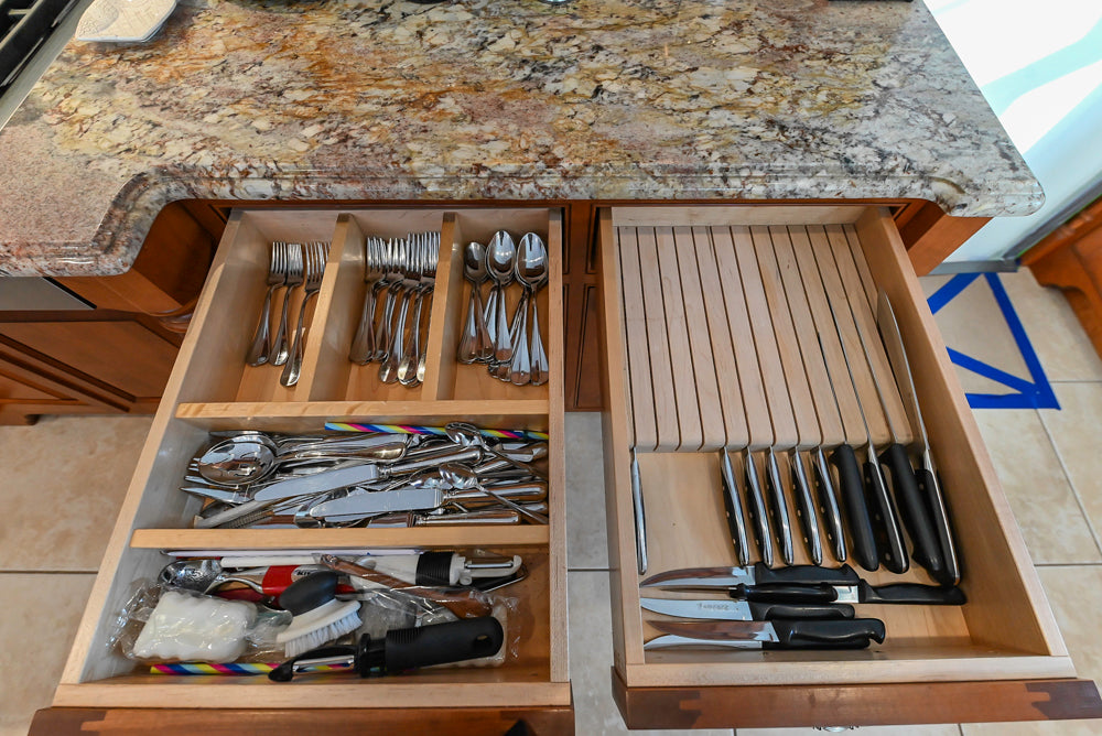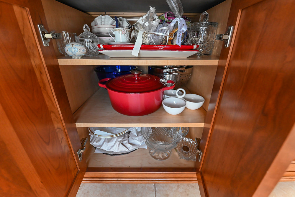 Please be aware that both showroom and pre-owned cabinetry will have pre-existing cut-outs. These openings for electrical, plumbing, and gas connections are commonly found on the backs, sides, and toe kicks of the units.
