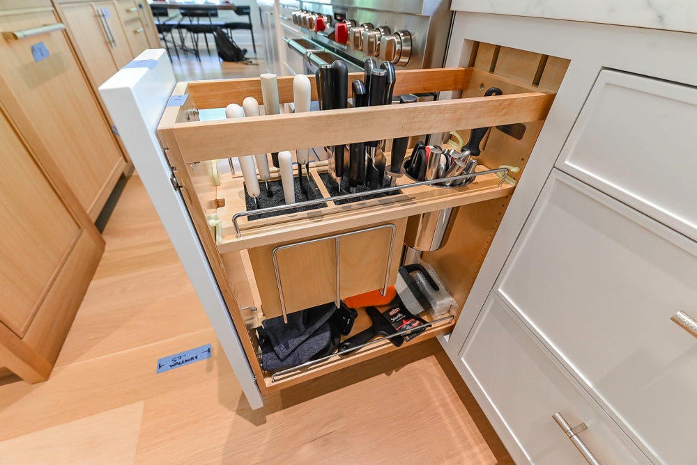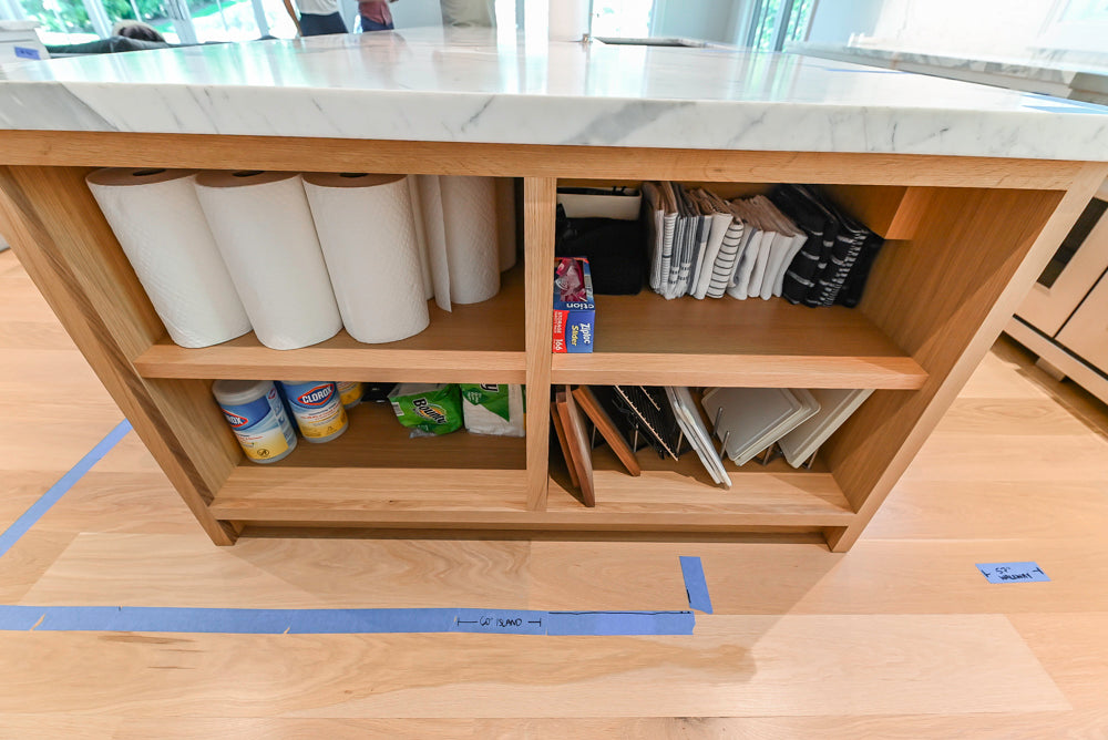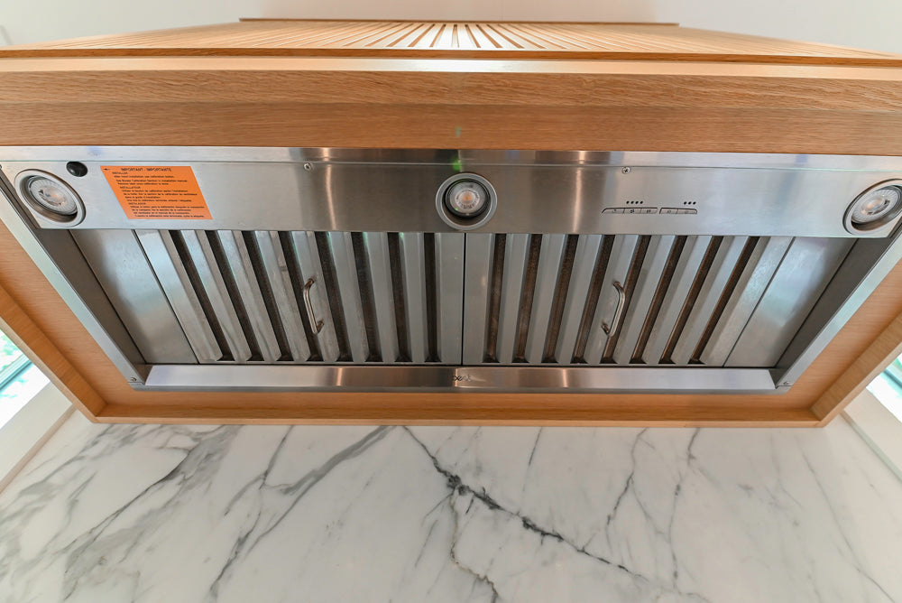 Elegant, functional, and thoughtfully designed, this custom transitional kitchen blends crisp white cabinetry with a natural wood-toned island for a warm, inviting contrast. The white marble countertops add a touch of luxury and durability, creating a refined backdrop for cooking, entertaining, and everyday living.