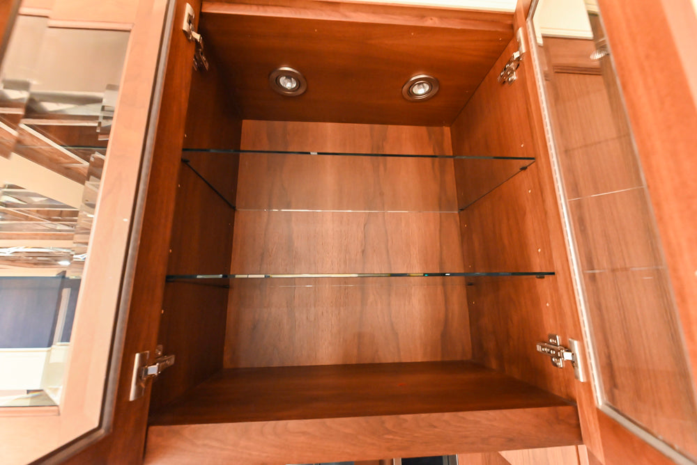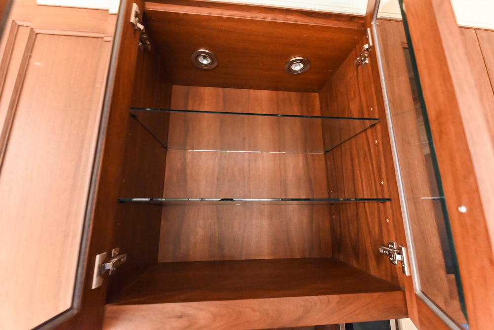 This beautifully crafted custom transitional wet bar combines timeless woodwork with functional elegance. Featuring rich brown cabinetry, sleek stone countertops, and space for seating, it’s designed to elevate any entertainment area with warmth and sophistication.