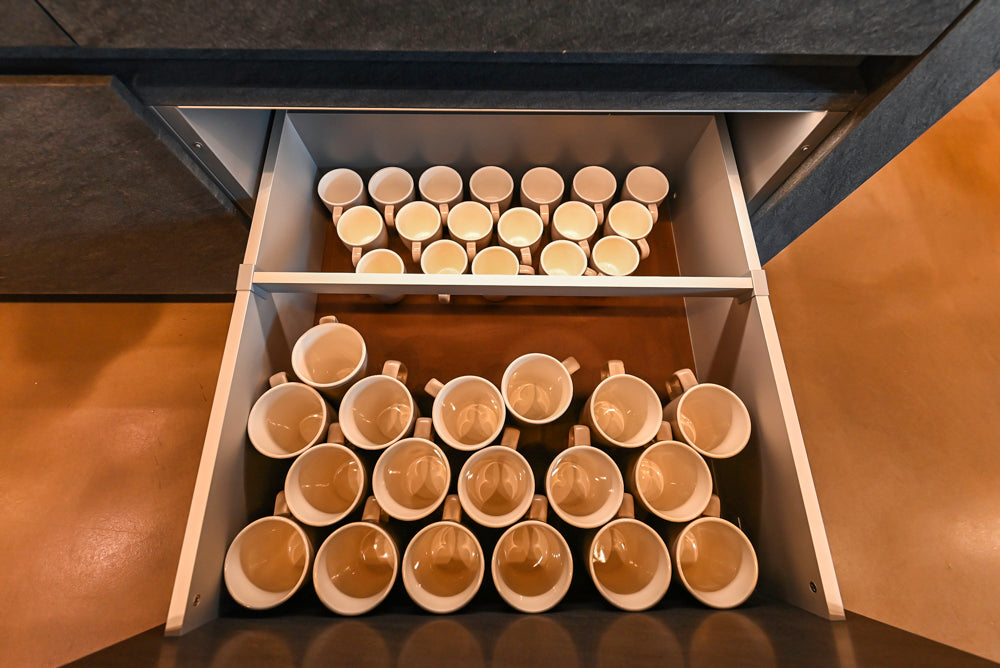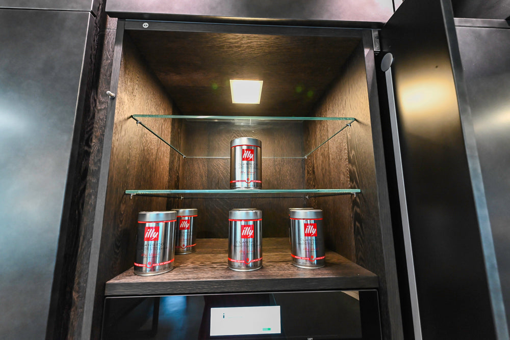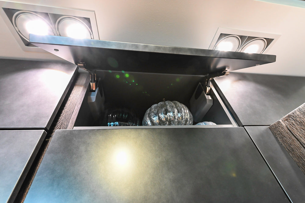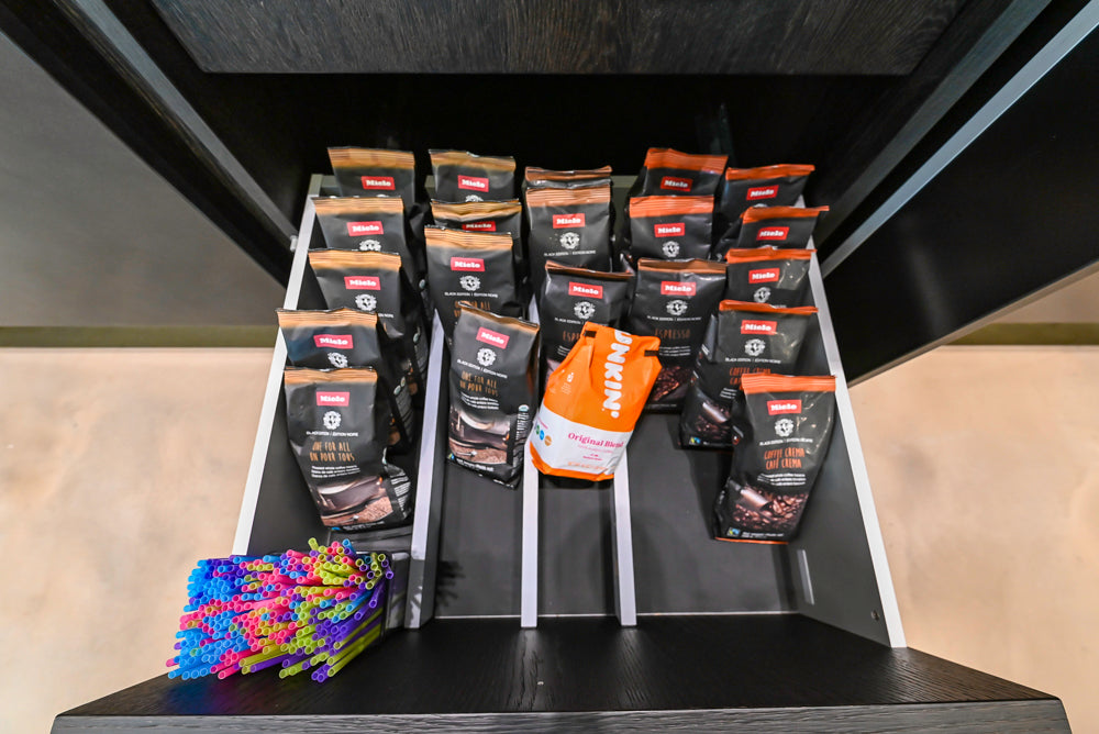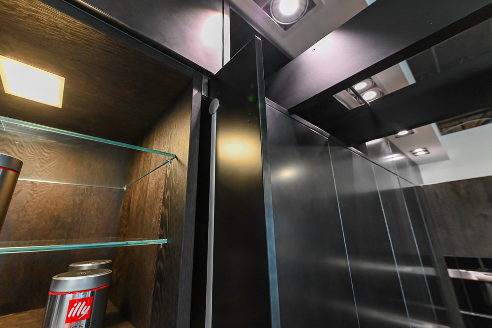 • Pocket door for coffee bar