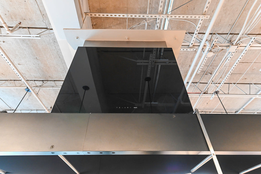 • Work's bridge in black aluminum w/ gliding hanging cart