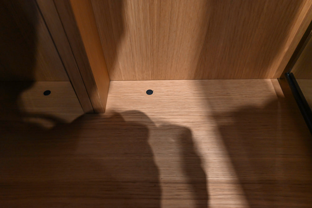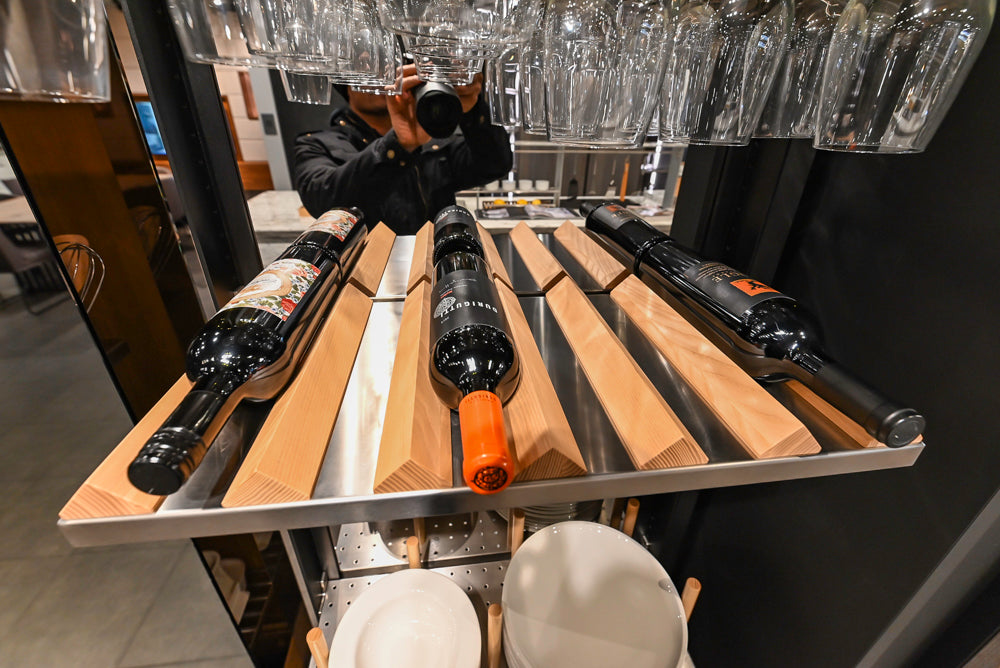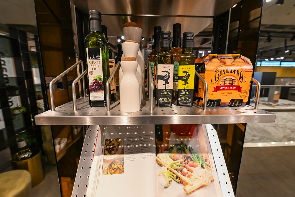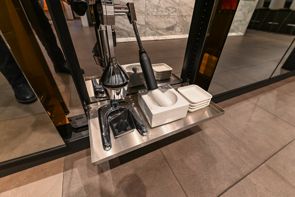No handles, buttons, or other mechanisms to open a turnstile glass panel to find the tool, food items, or appliance needed to prepare your meals. Just a bump of the hip or a quick push with your hand turns a sleek wall into a well-organized storage solution.