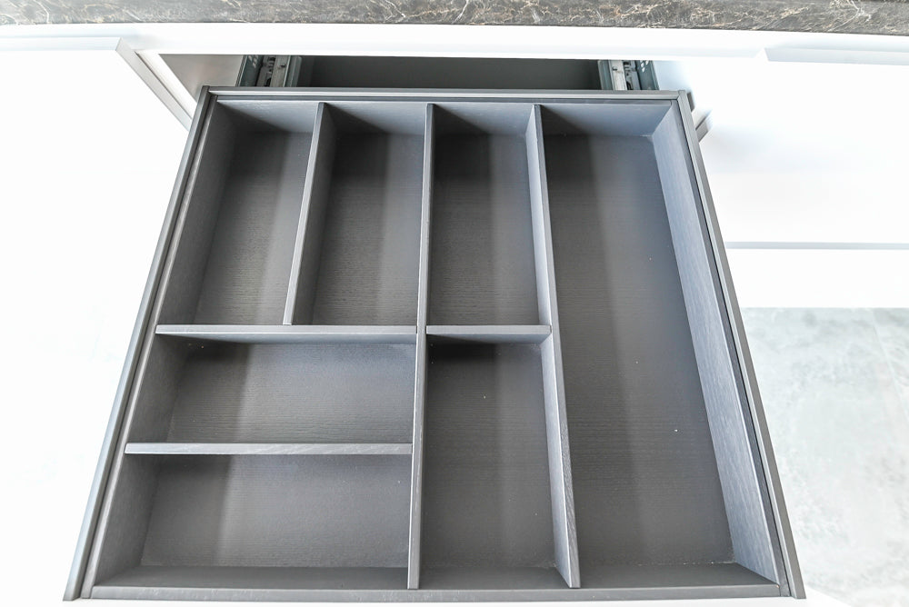 Bright, sleek, and contemporary, this Häcker kitchen showcases the timeless appeal of glossy white cabinetry paired with a bold black quartz countertop. Designed with minimalist lines and modern styling, it creates a clean, polished look that elevates any home.