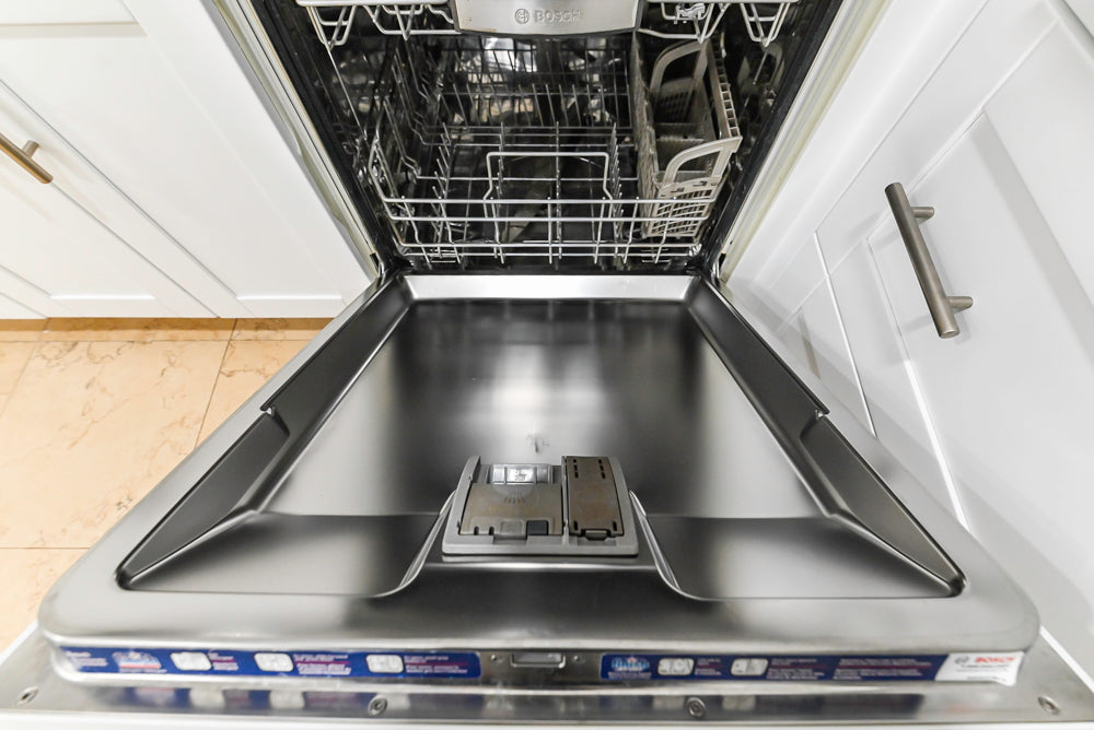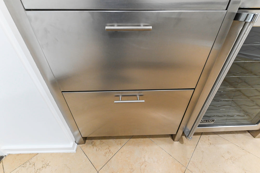 Outfitted with a complete stainless steel appliance package, this kitchen offers the performance and reliability of modern technology with a look that perfectly complements its transitional design.