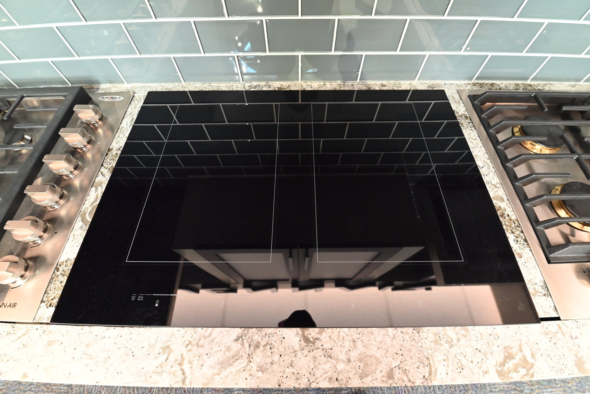 Install without limits. This JennAir® cooktop can be installed true flush or semi-flush at 3mm above any level countertop, including an island or peninsula.