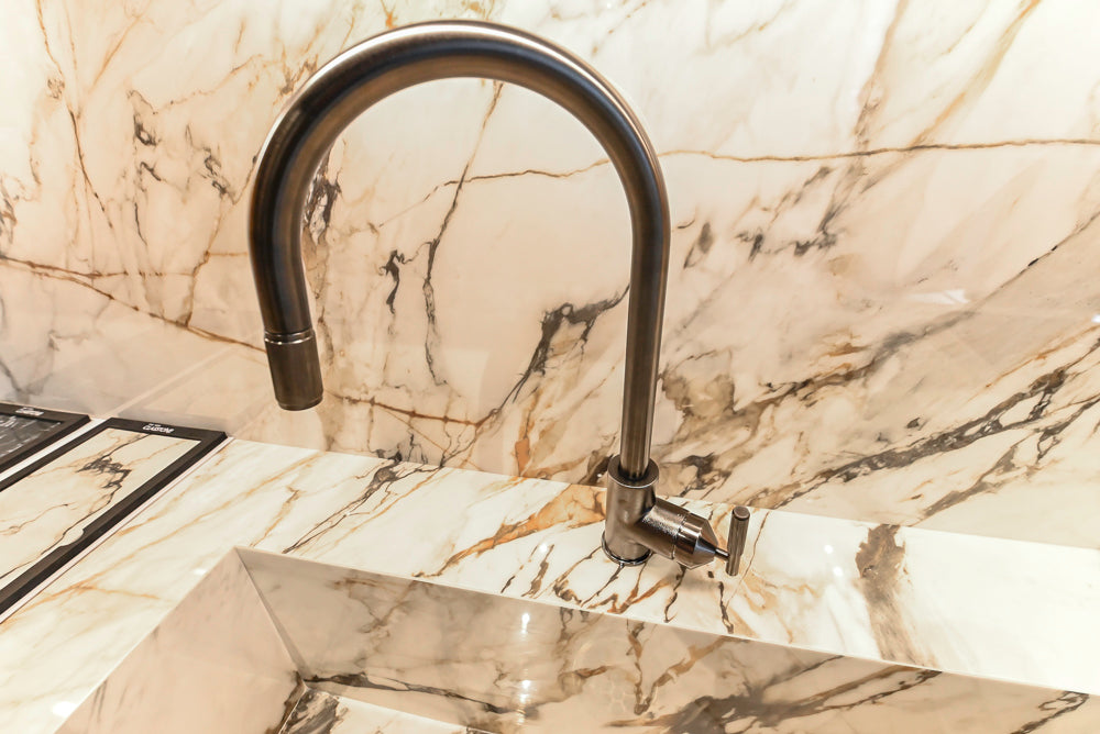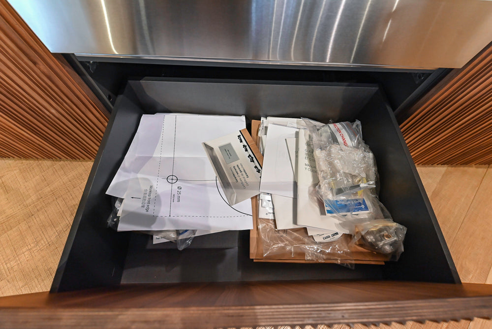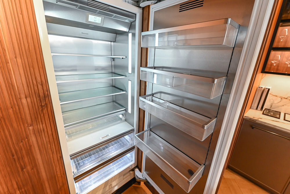 The integrated high-end appliances provide professional-grade performance while maintaining a seamless look. The expansive Neolith island serves as a stunning focal point—ideal for cooking, entertaining, or casual dining—while the durable stone surfaces ensure long-lasting beauty and functionality.
