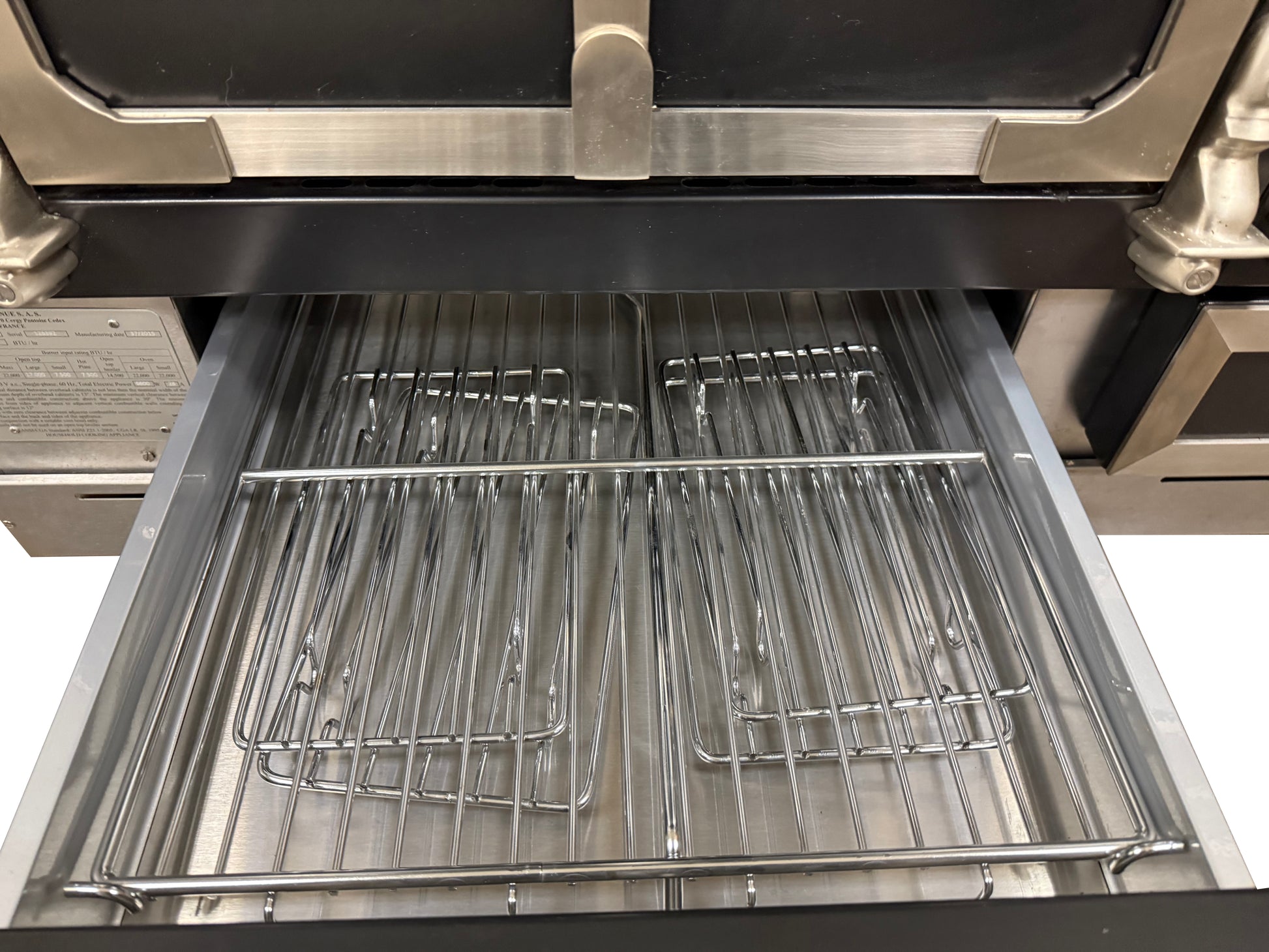A symbol of French luxury and culinary excellence, the La Cornue Château 150 is designed to be both a statement piece and a chef’s ultimate tool. Finished in timeless black with refined detailing, this 59" range exudes sophistication while offering unmatched cooking performance.