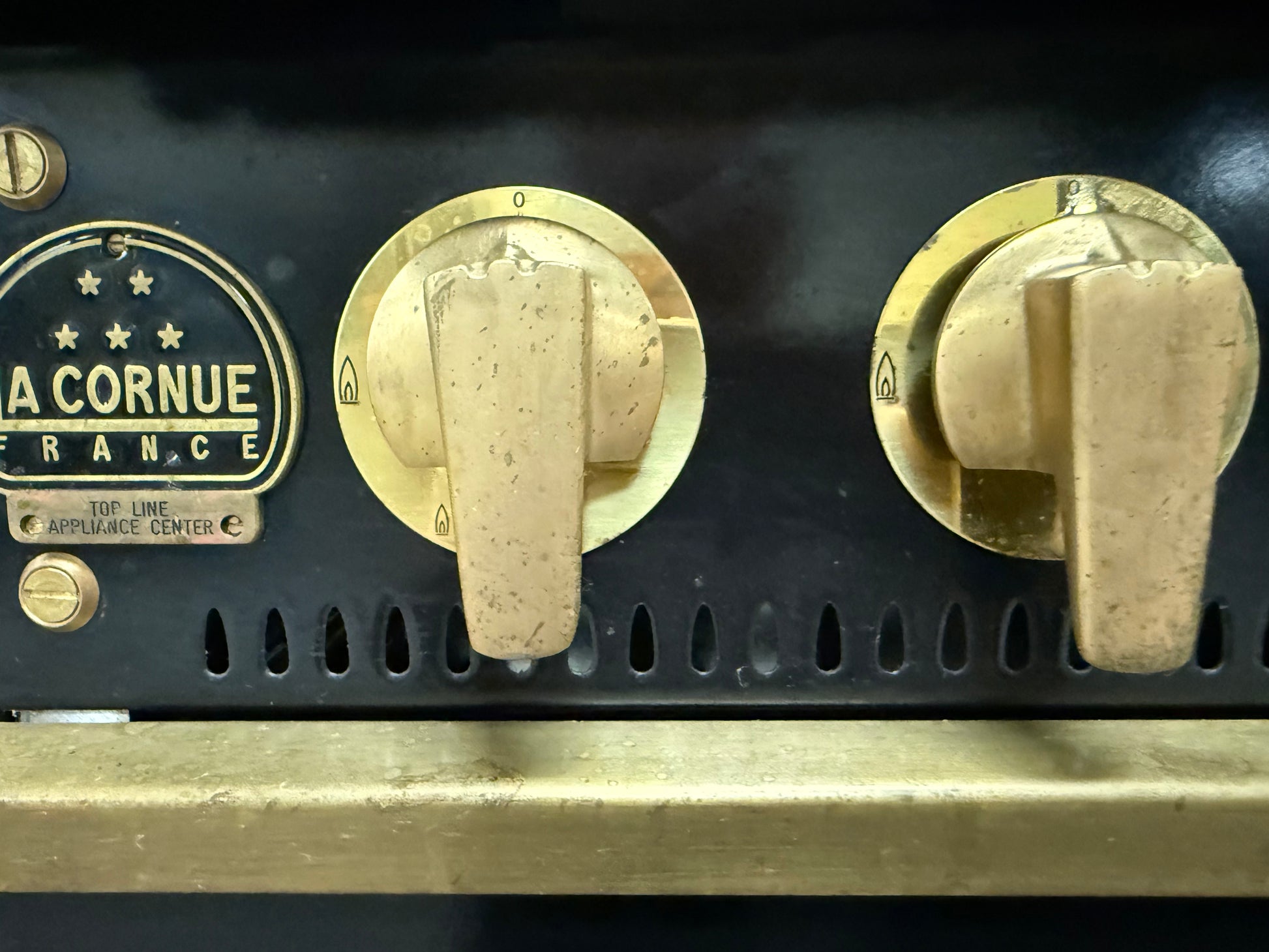 The La Cornue Château 120 is an icon of French culinary artistry, blending timeless design with professional cooking performance. At 47", this dual fuel range is finished in classic black with polished detailing, making it a striking focal point in any luxury kitchen.
