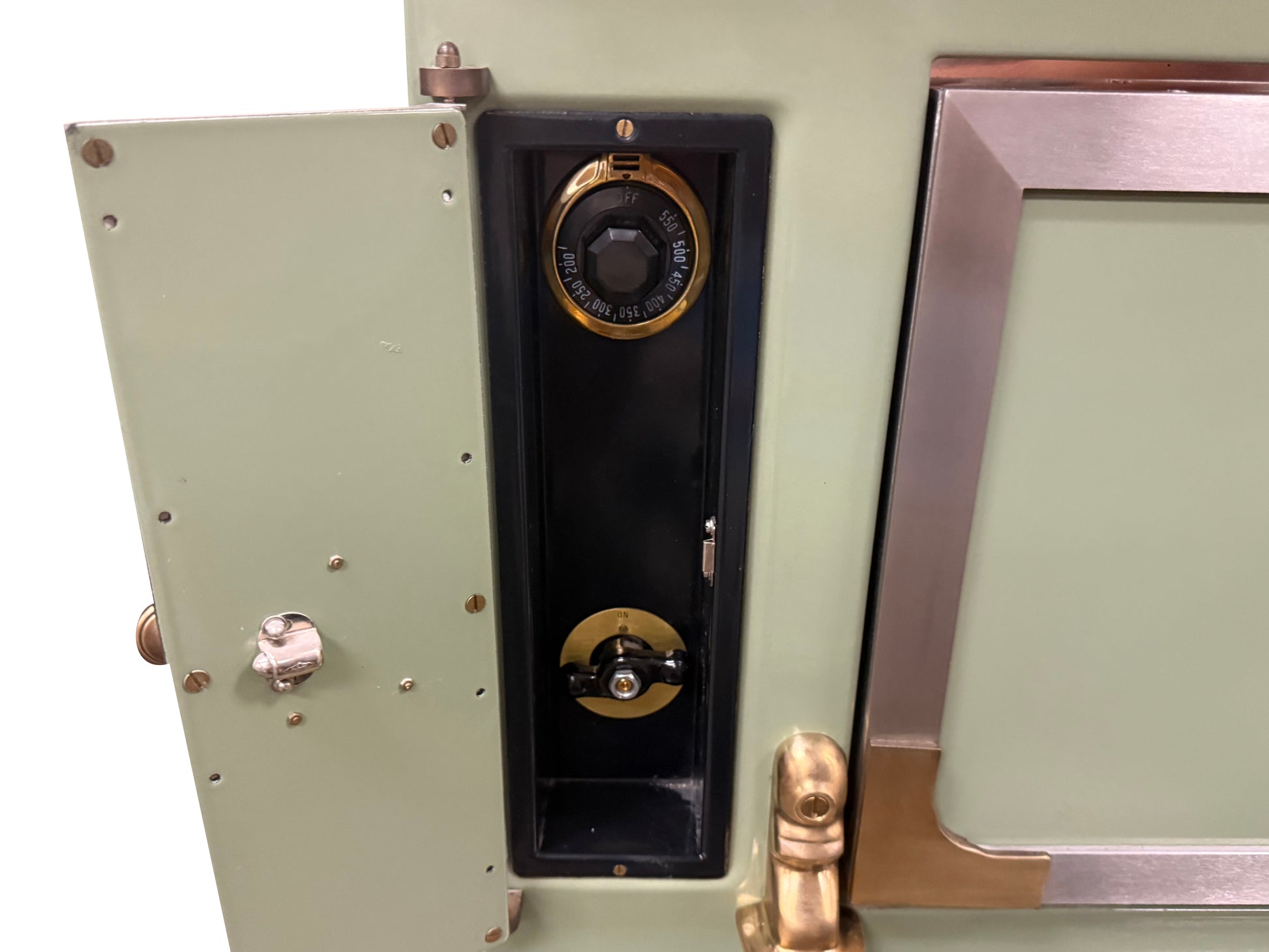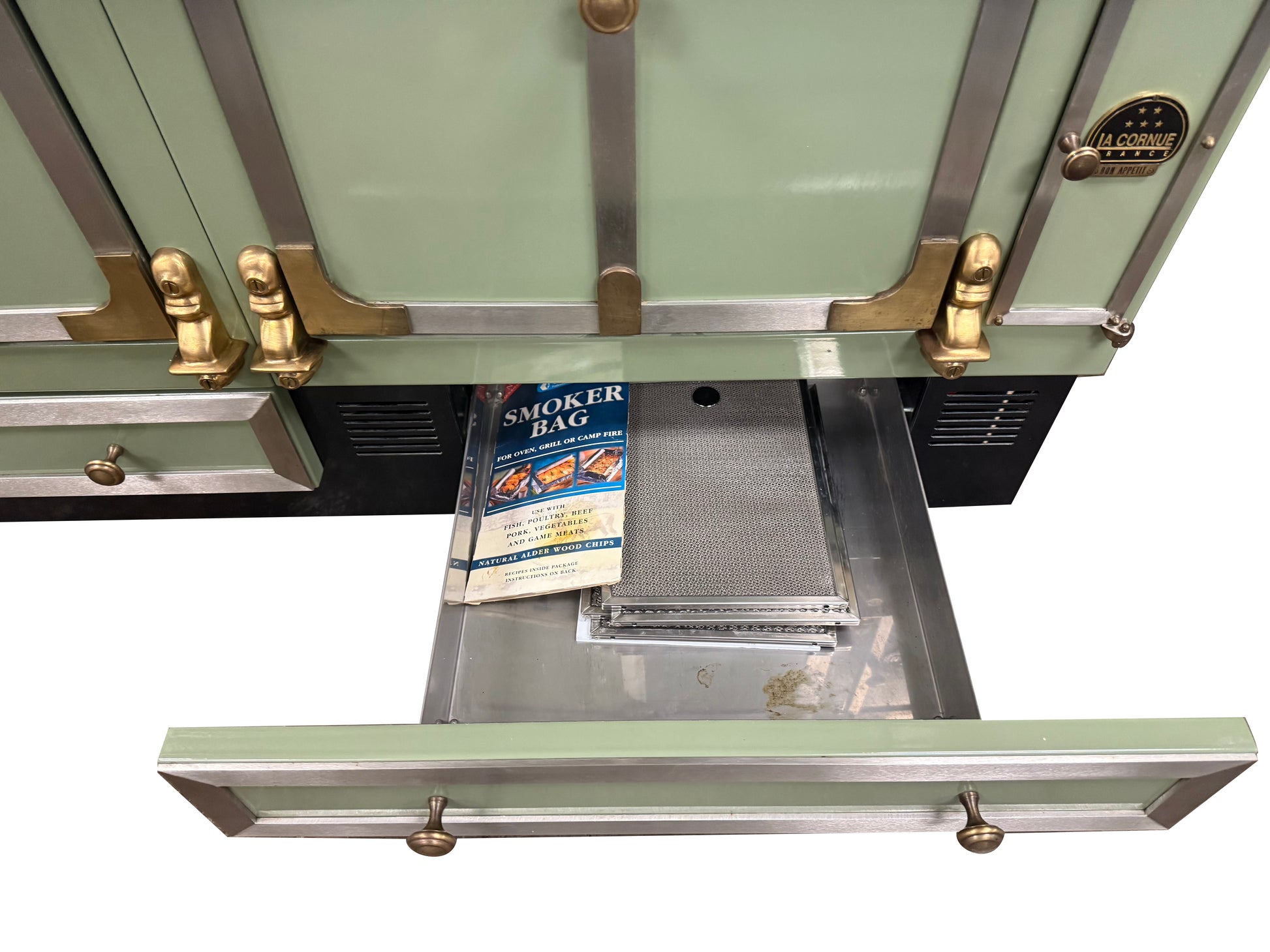 Crafted in France, the La Cornue Château 150 is a true culinary showpiece, combining timeless artistry with professional-grade performance. Finished in a distinctive pale green with a matching hood, this 59" range is as elegant as it is powerful, making it the centerpiece of any luxury kitchen.