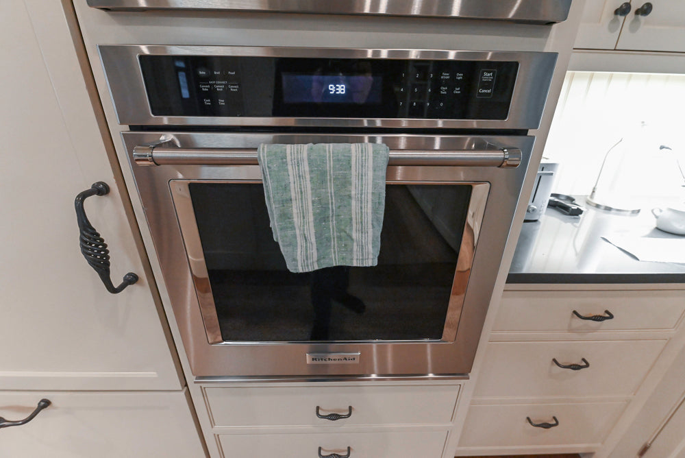 The stone countertops further elevate the kitchen, offering both beauty and durability. Whether you’re chopping, rolling, or entertaining, these countertops are as beautiful as they are functional.