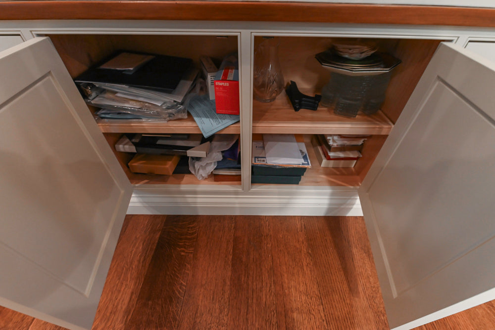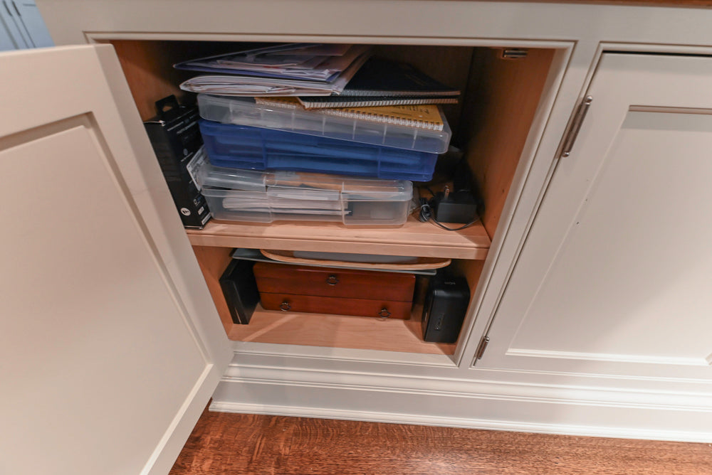 This kitchen also includes a thoughtfully designed desk area, providing a convenient space to manage household tasks, organize recipes, or simply have a quiet moment of productivity.