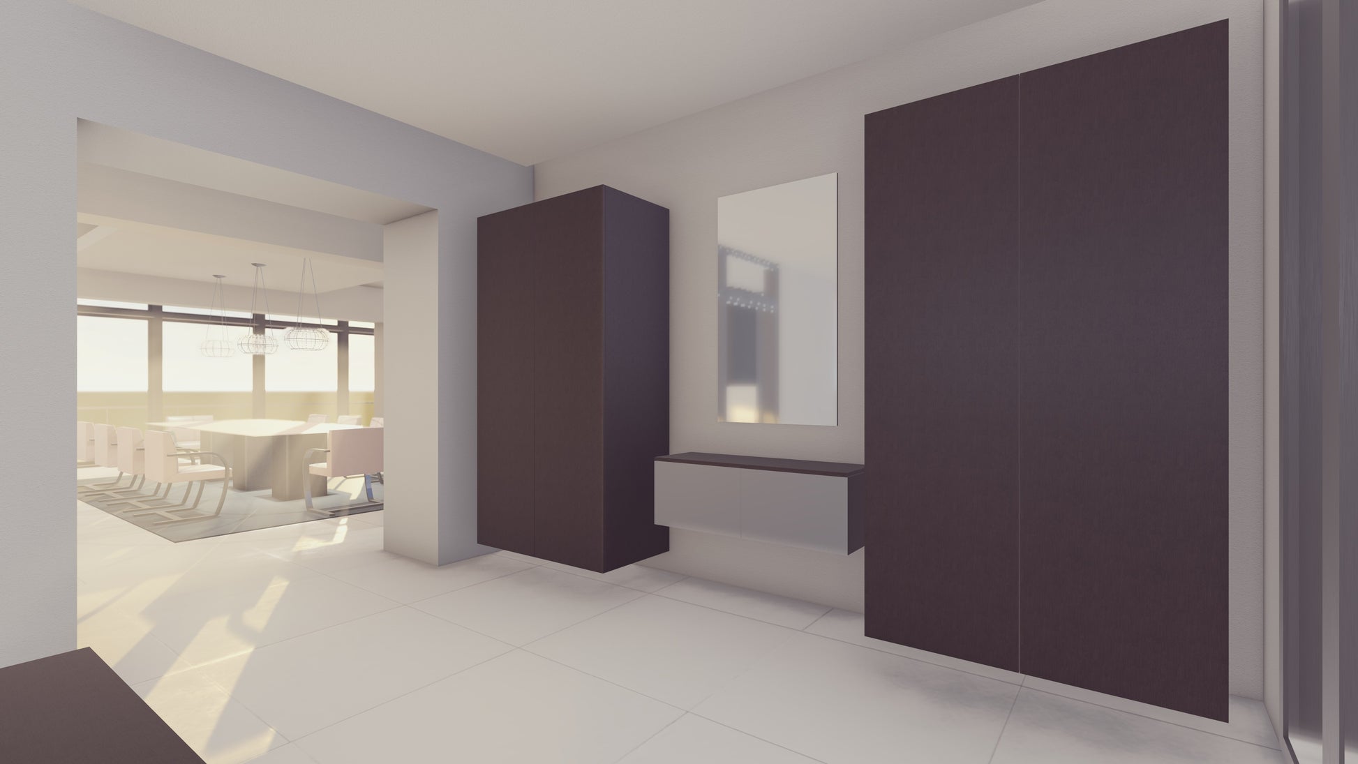 Make a bold first impression with this striking Poggenpohl floating entry cabinetry, blending refined materials with sleek modern design. The rich Bronze Matte Glass paired with warm Pine Terra Veneer creates a harmonious balance of texture and tone, perfect for contemporary spaces.
