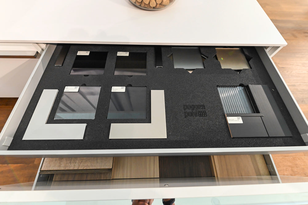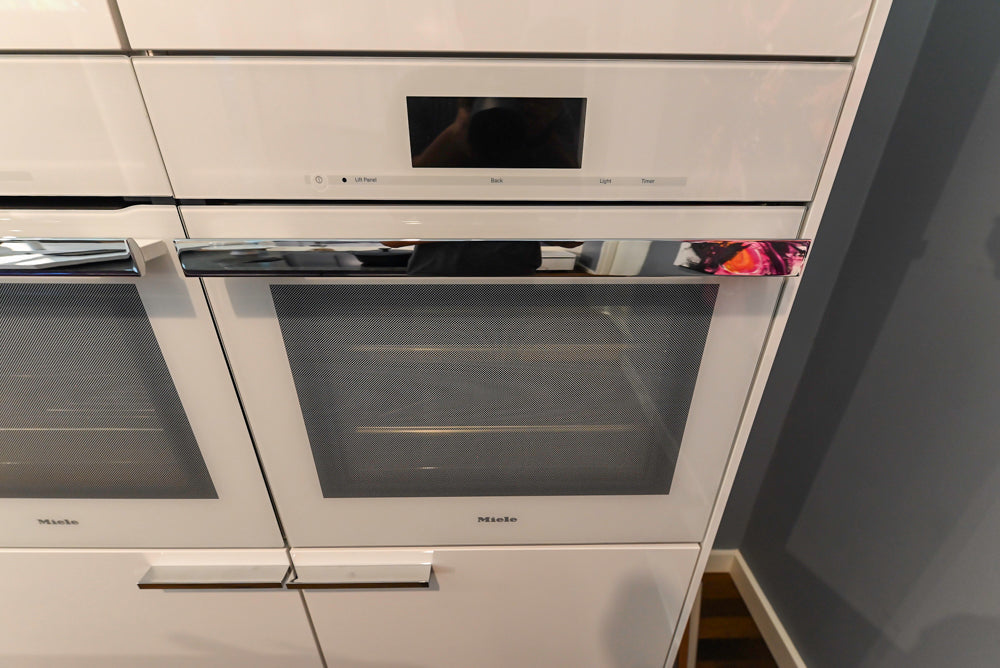 Step into a world of sophistication and innovation with the Poggenpohl Kitchen, a stunning modern kitchen that combines sleek high gloss white finishes with bold purple accents. Designed for those who appreciate cutting-edge design and functionality, this showroom-worthy kitchen exudes contemporary elegance and makes a striking statement in any home. The dynamic interplay between the crisp white surfaces and vibrant purple details creates a kitchen that is both visually captivating and highly functional.