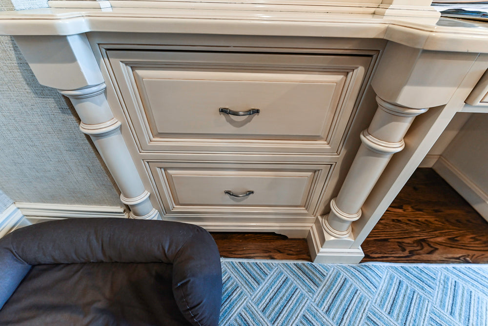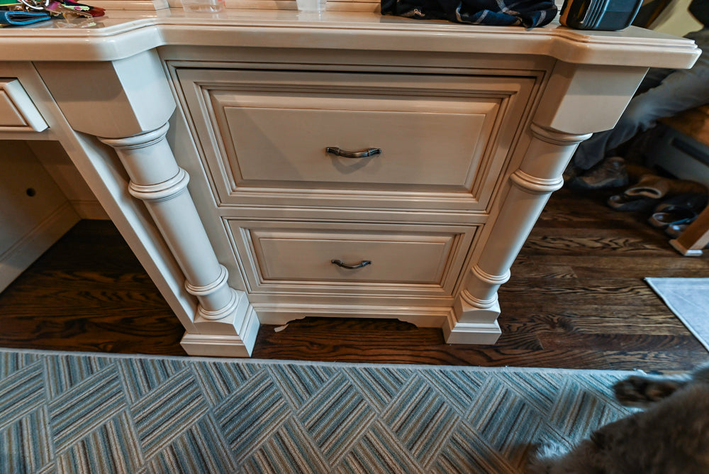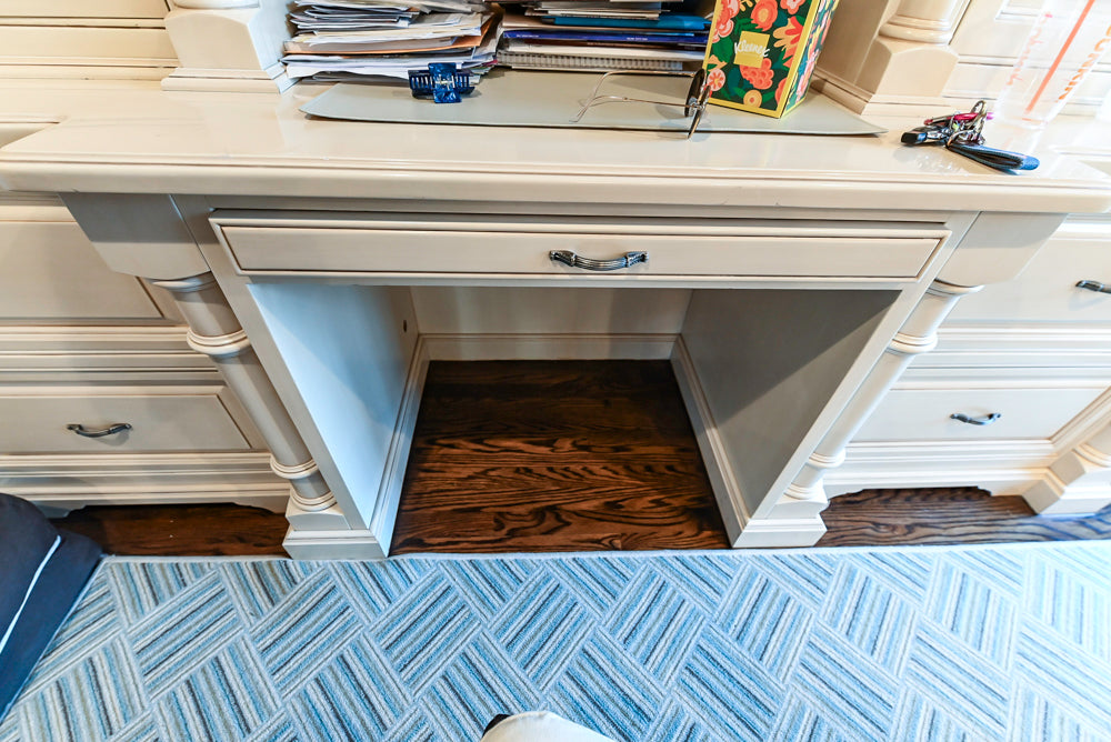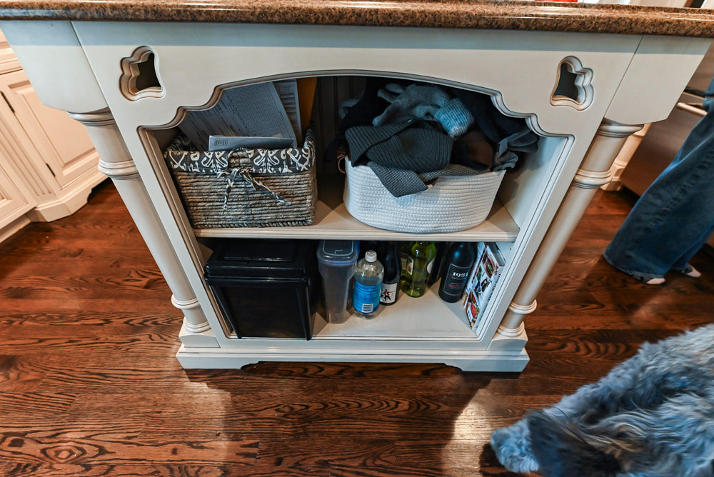 The spacious island serves as the centerpiece of the kitchen, providing ample space for meal prep, casual dining, or socializing with family and friends. The built-in desk area offers the perfect spot for managing household tasks, meal planning, or working from home, ensuring that everything you need is within reach.