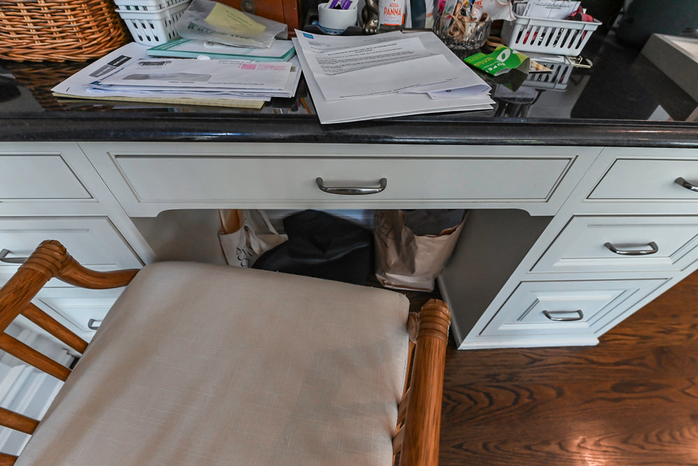 Functional Desk Area: Perfect for managing family schedules, paying bills, or simply staying organized, the built-in desk area integrates seamlessly into the kitchen design. It offers a quiet workspace while keeping your kitchen clutter-free.
