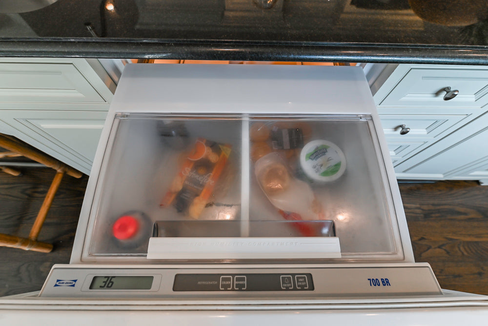 Top-of-the-Line Appliances: Equipped with premium, energy-efficient appliances, this kitchen is as practical as it is beautiful. The range, oven, and refrigerator are designed to blend seamlessly with the cabinetry, providing a polished, cohesive look.