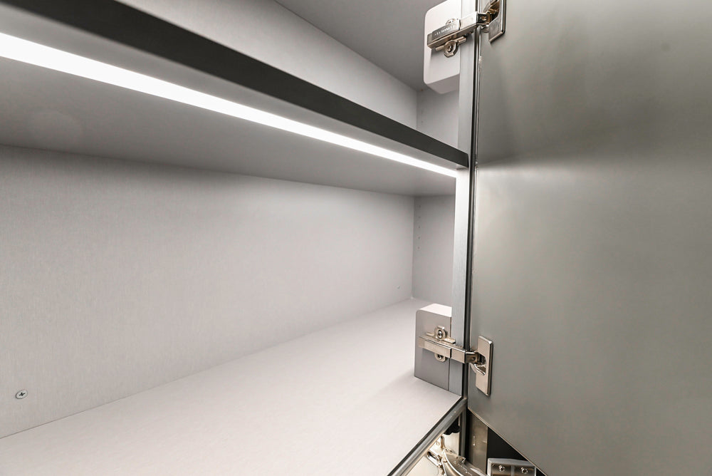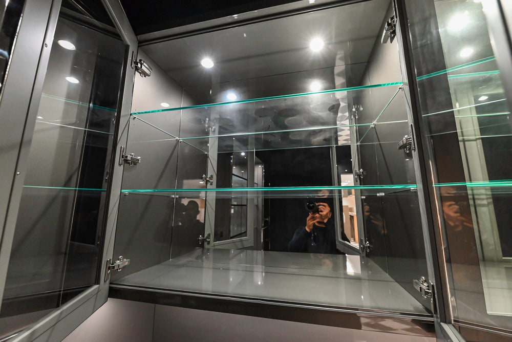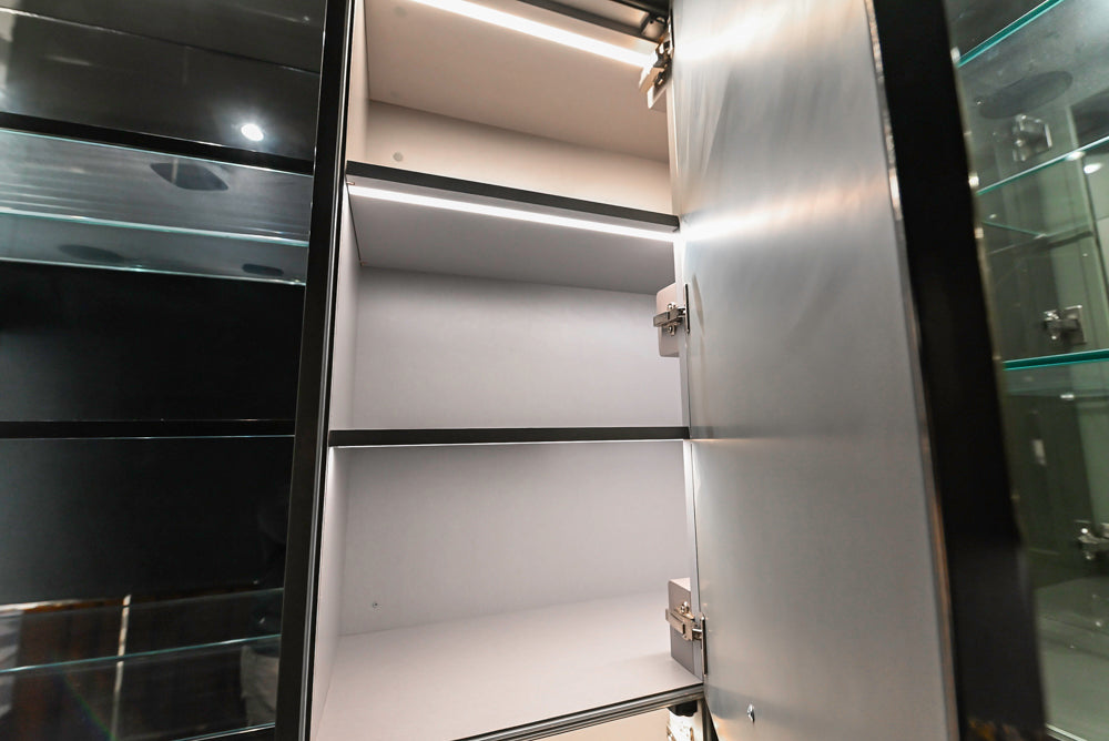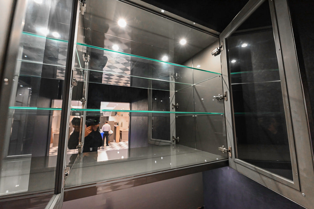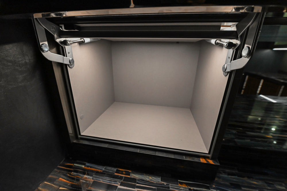 Outfitted with True Residential appliances, it delivers professional-grade refrigeration and storage, ensuring your beverages and bar essentials are always perfectly chilled and organized. Every detail—from the reflective metallic finishes to the elegant stone countertops—reflects the meticulous craftsmanship and sophistication St. Charles is known for. Perfect for entertaining, cocktail prep, or a statement piece in a high-end home.