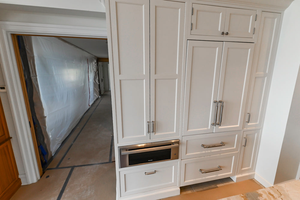 Step into timeless elegance with our Traditional All-White Quartz Kitchen, a stunning blend of classic charm and modern functionality. This kitchen features pristine white quartz countertops that provide a sleek and durable surface, complemented by beautifully crafted cabinetry with a traditional design. The centerpiece of this space is the spacious island, perfect for both meal preparation and casual dining. With its clean lines and sophisticated style, this kitchen offers a serene and inviting atmosphere that enhances both functionality and aesthetics.