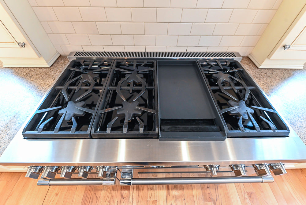 The centerpiece of this kitchen is the 48" Thermador Range—a high-performance appliance that combines professional-grade power with sophisticated design. Whether you’re preparing a family dinner or hosting a holiday feast, the Thermador Range ensures precise cooking results with its powerful burners and oven, making it perfect for serious chefs and home cooks alike.