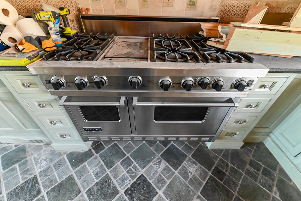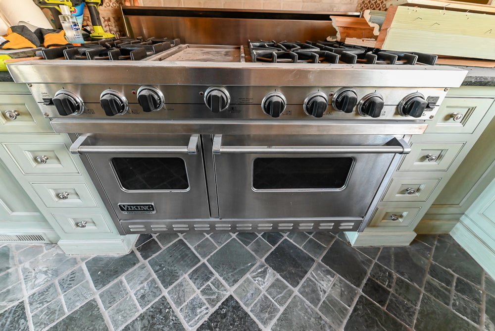 Rich granite countertops complement the cabinetry with timeless durability and elegance, and premium Viking appliances elevate the kitchen with professional-grade performance. Perfect for those seeking a blend of character and modern convenience, this kitchen is a standout addition to any home.