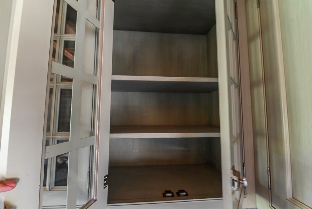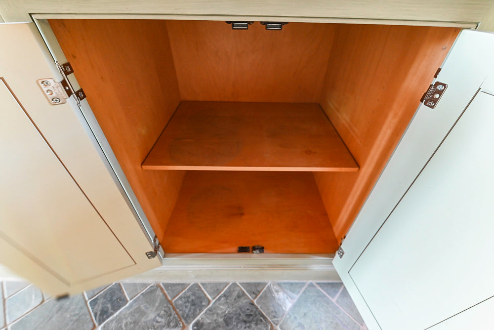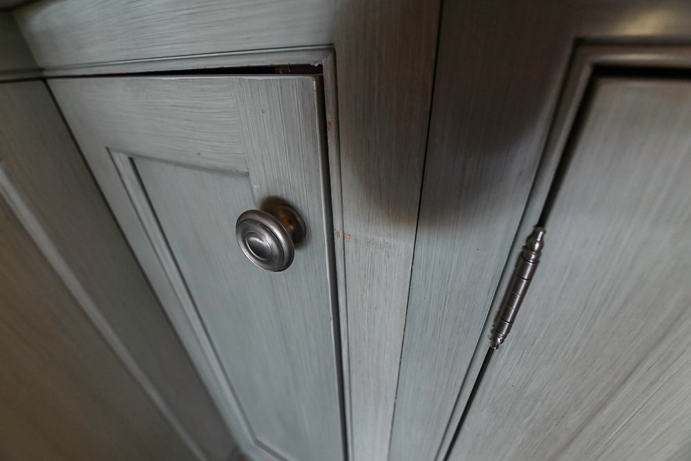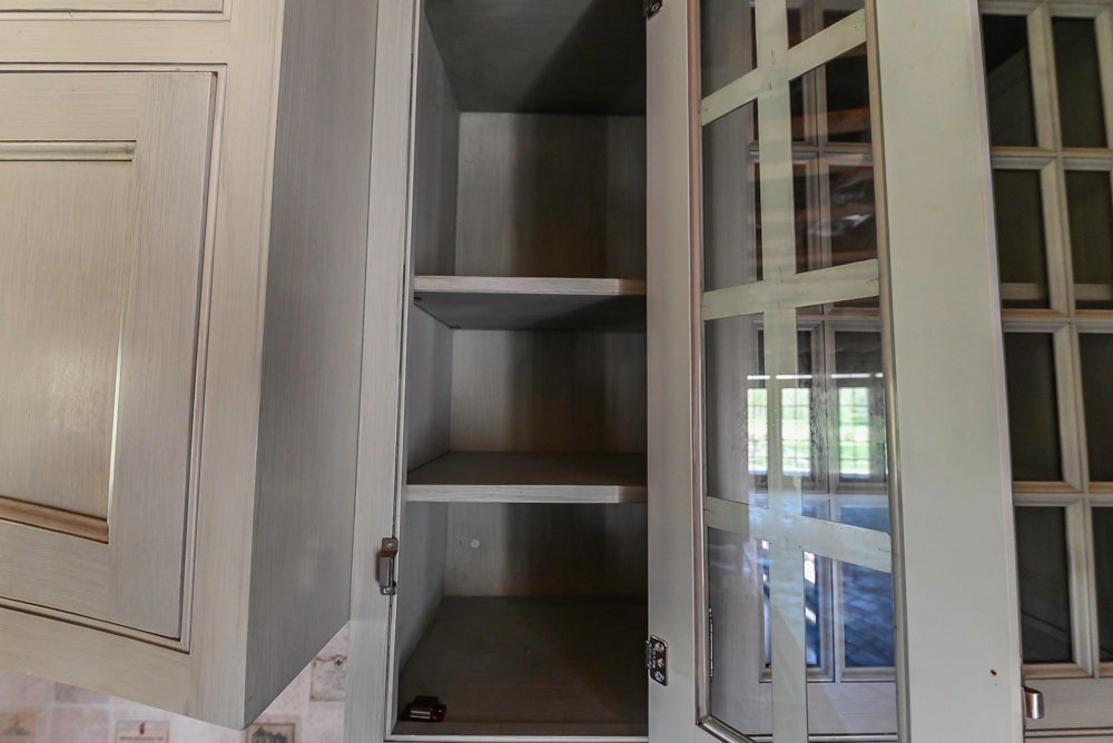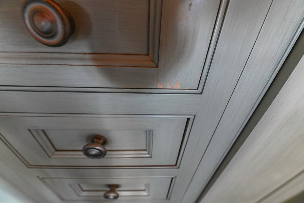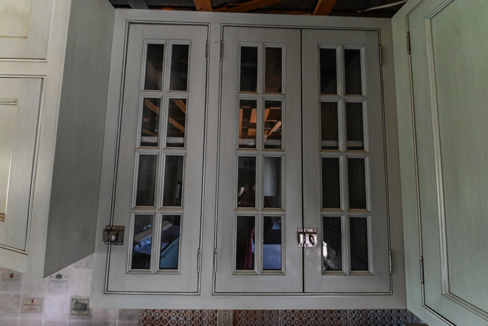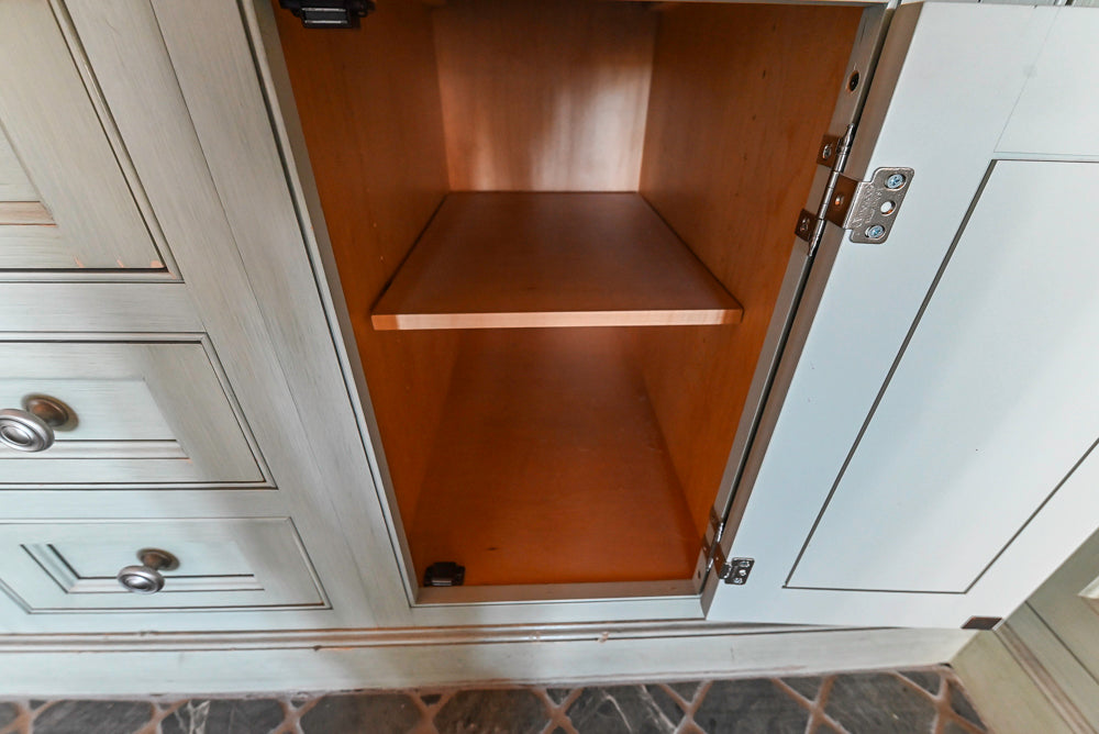 Bring vintage charm and classic craftsmanship to your home with this Traditional Washed Out Light Green Kitchen. The soft, muted green finish adds a warm and welcoming touch, while the spacious island offers added functionality and a natural gathering space.